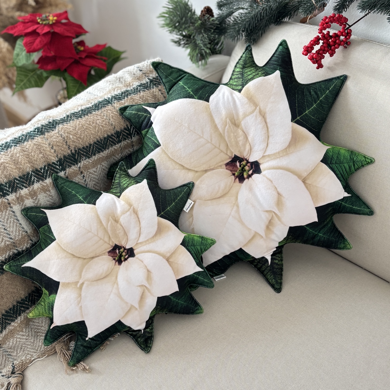 Zestaw poduszek Poinsencja Gwiazda Betlejemska biała