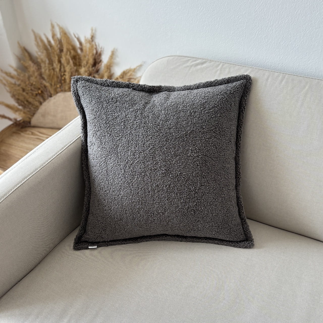 Klasyczny kształt Poduszka lub do wyboru poszewka w kolorze grafitowym (ciemnoszarym) z tkaniny boucle