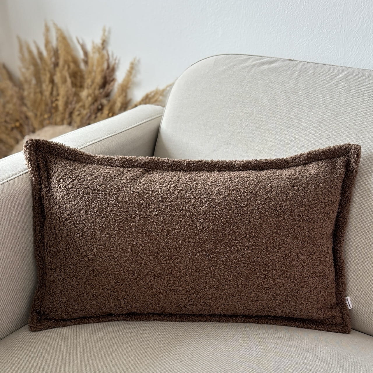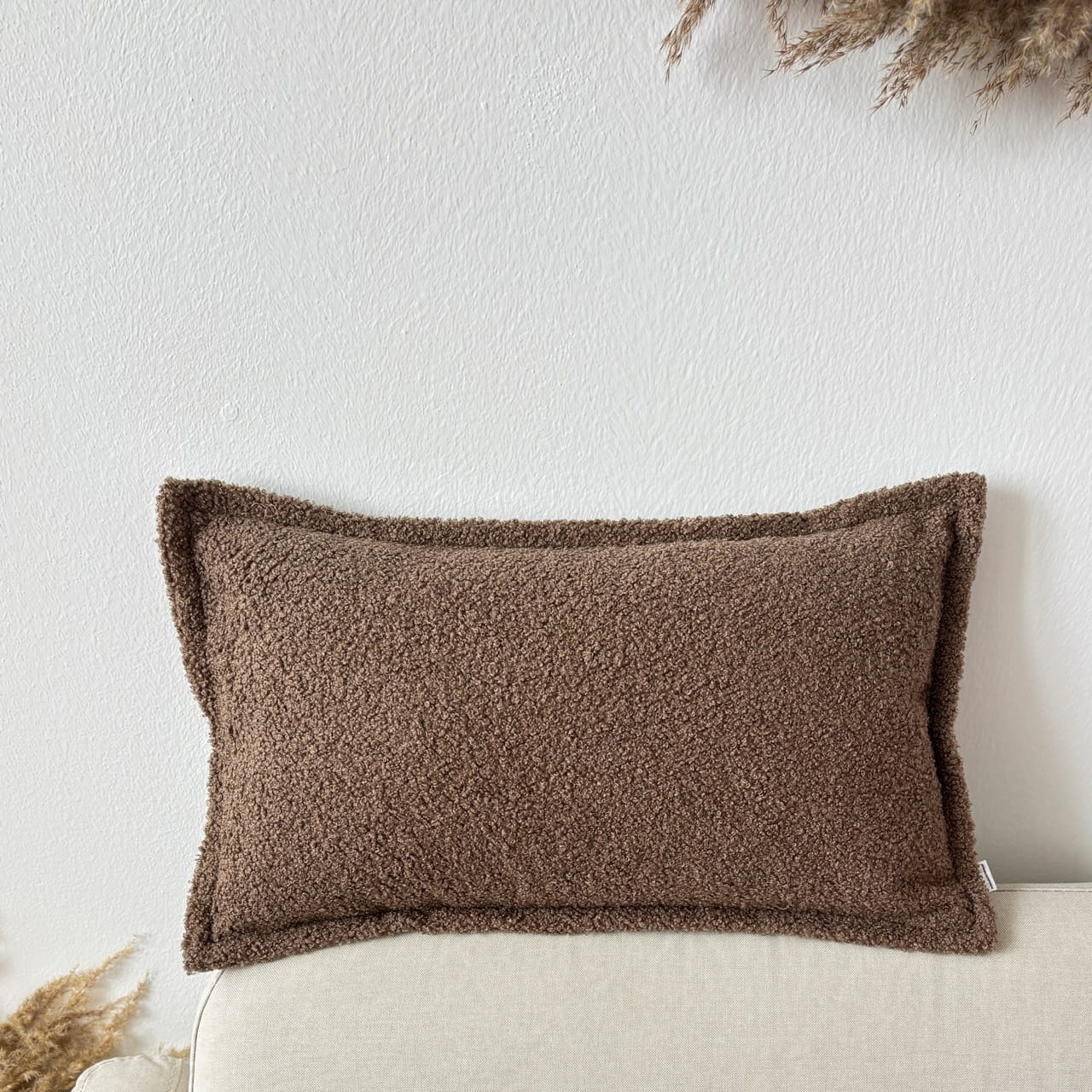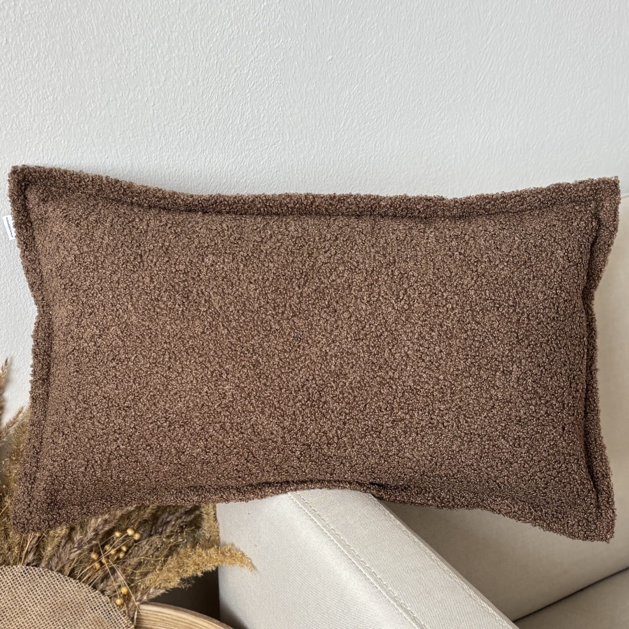 Poduszka dekoracyjna boucle brązowa prostokątna
