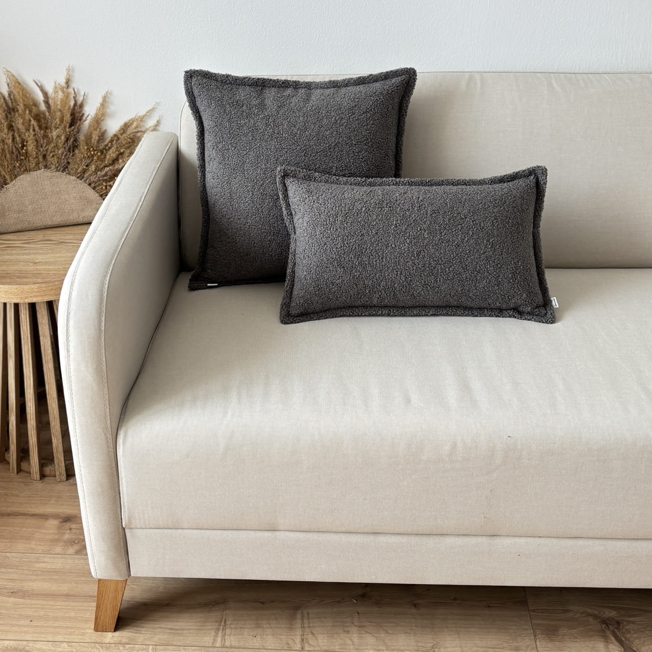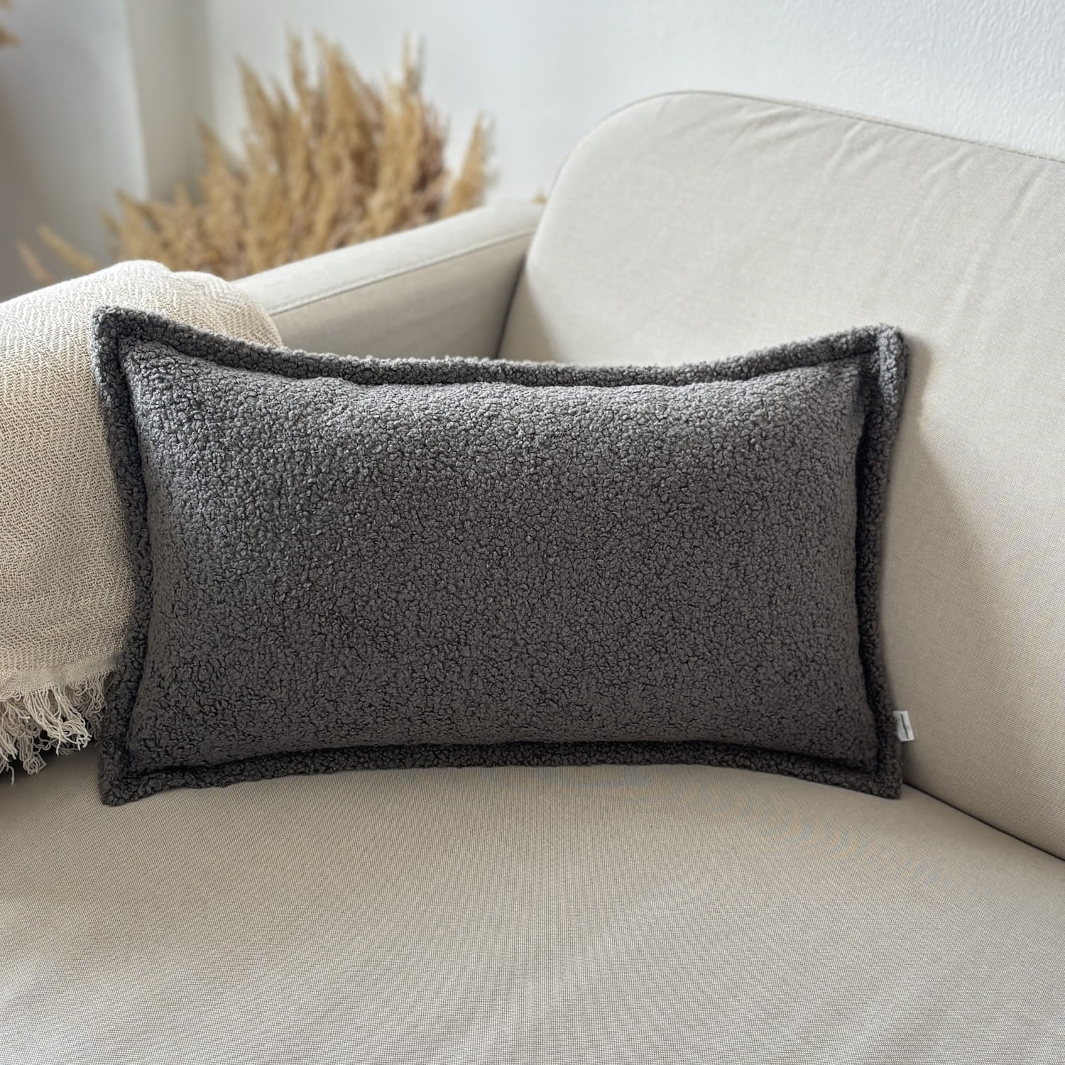 Poduszka dekoracyjna boucle prostokąt grafitowa