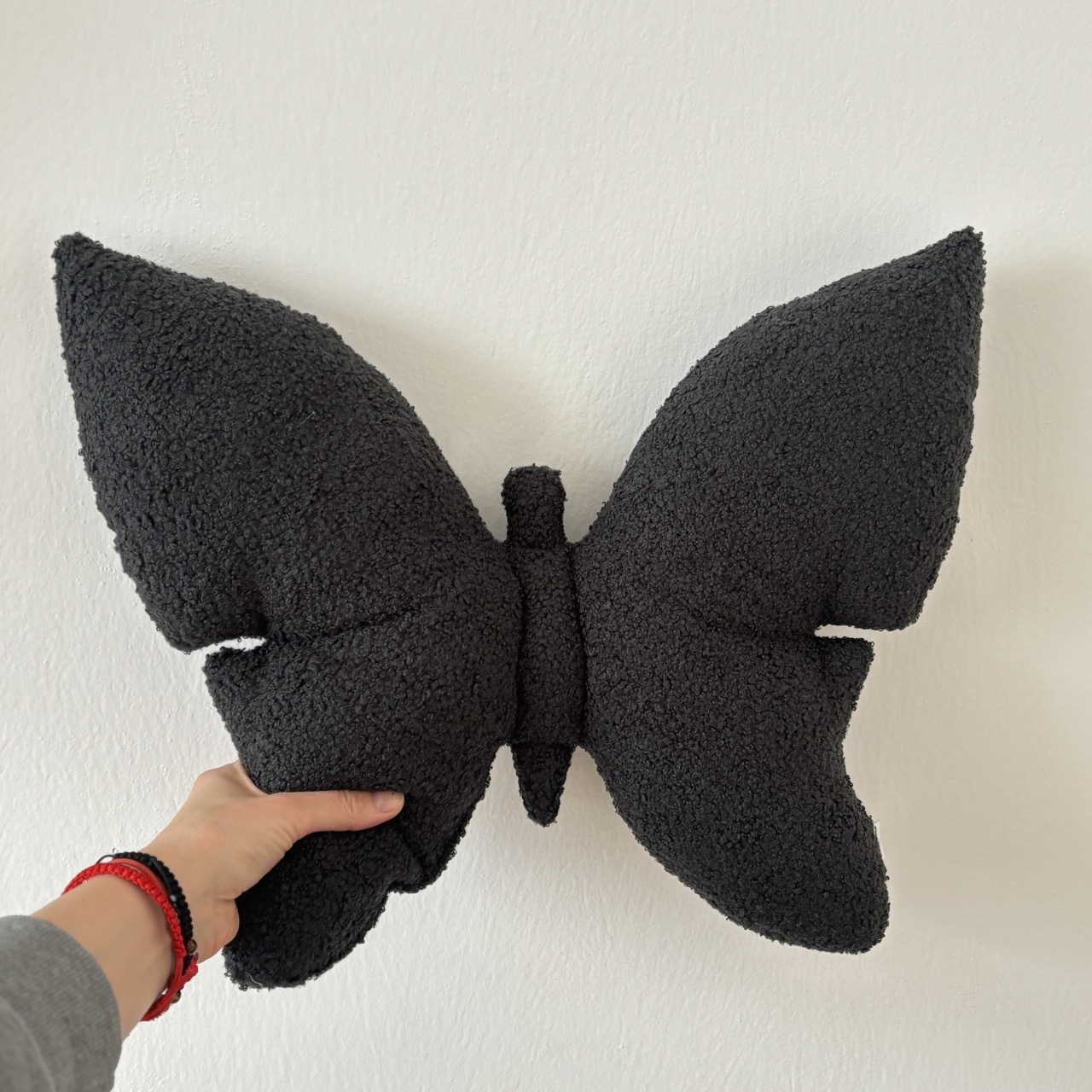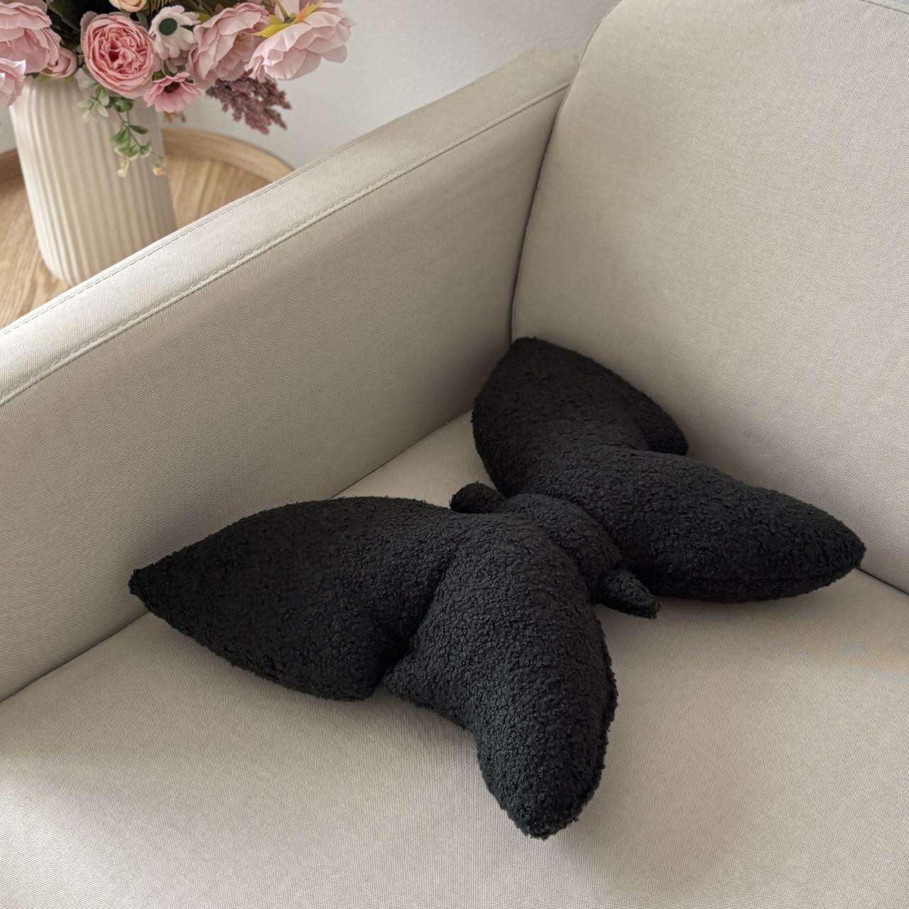 Poduszka minimalistyczna czarny Motyl Poduszka wykonana z tkaniny boucle „baranka”.