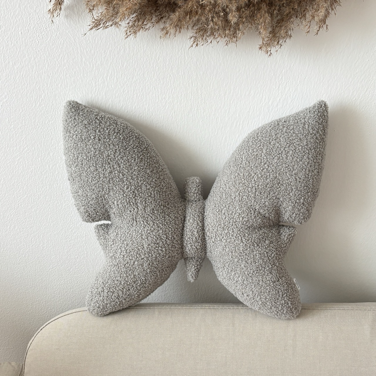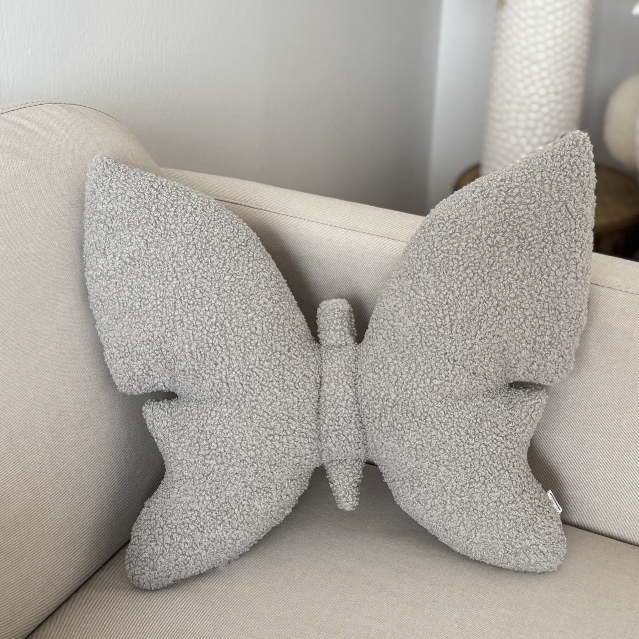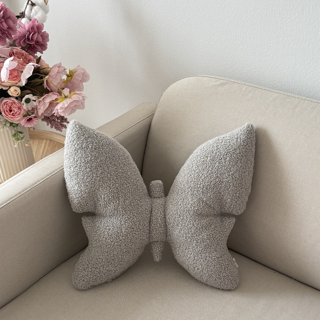 Poduszka dekoracyjna minimalistyczna Motyl w jasnym szarym odcieniu - idealnym do nowoczesnych wnętrz.