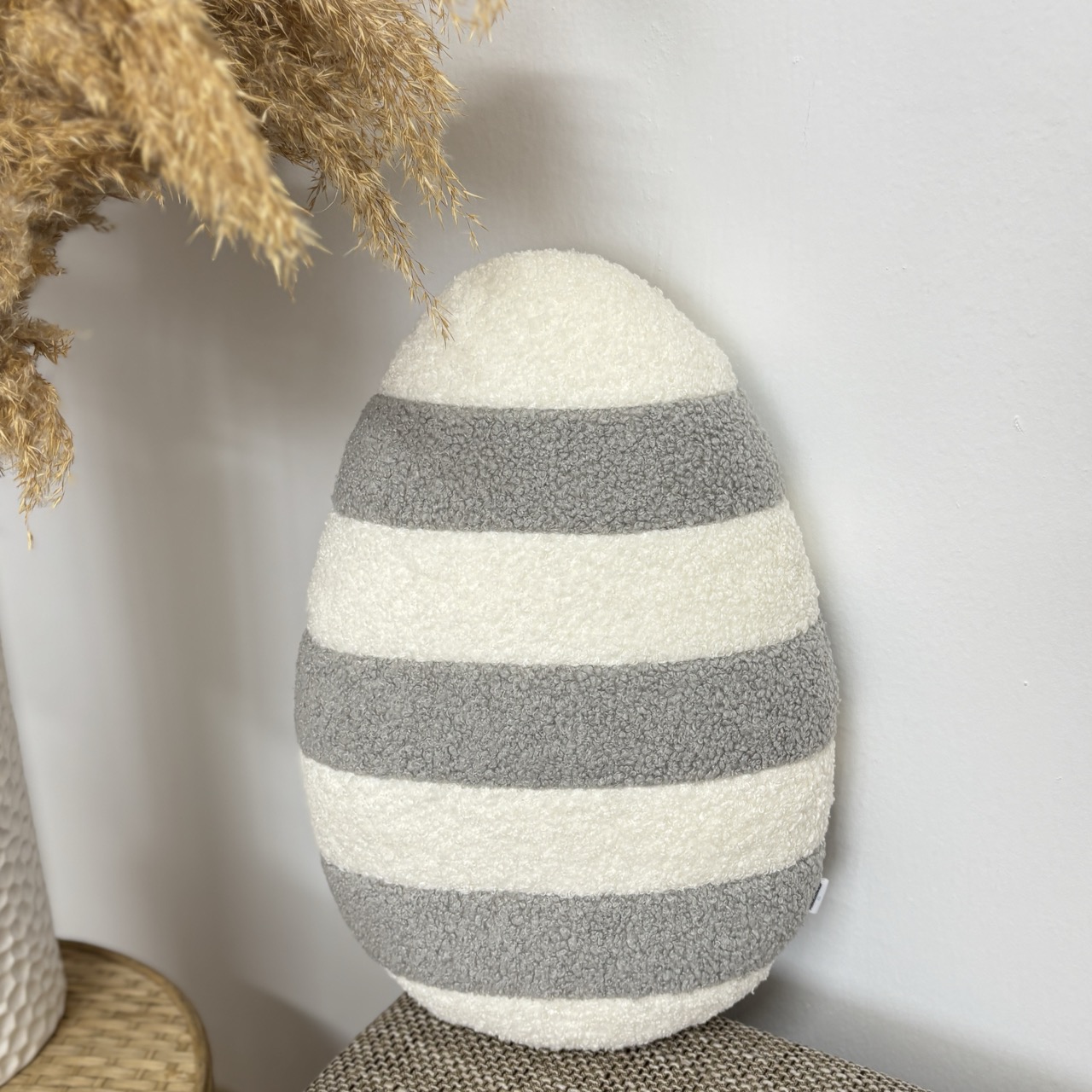 Poduszka jajko pisanka w paski jasny szary ecru