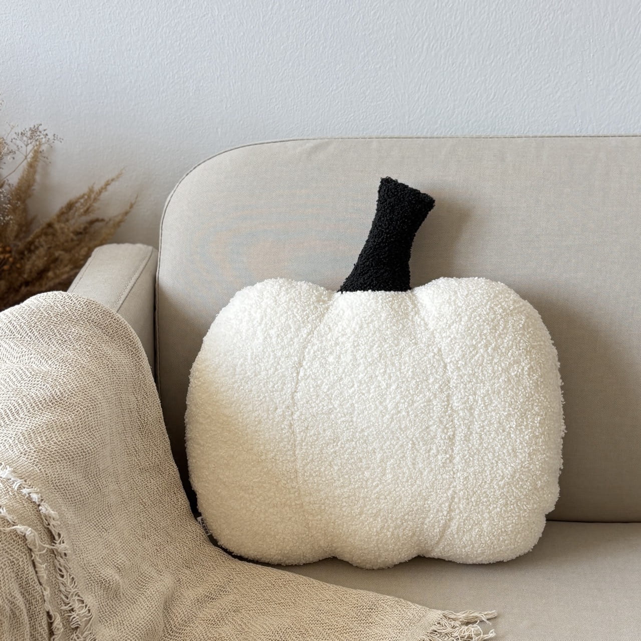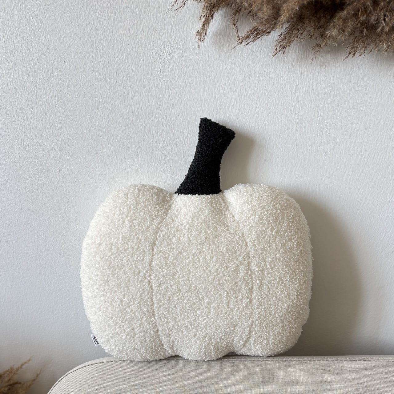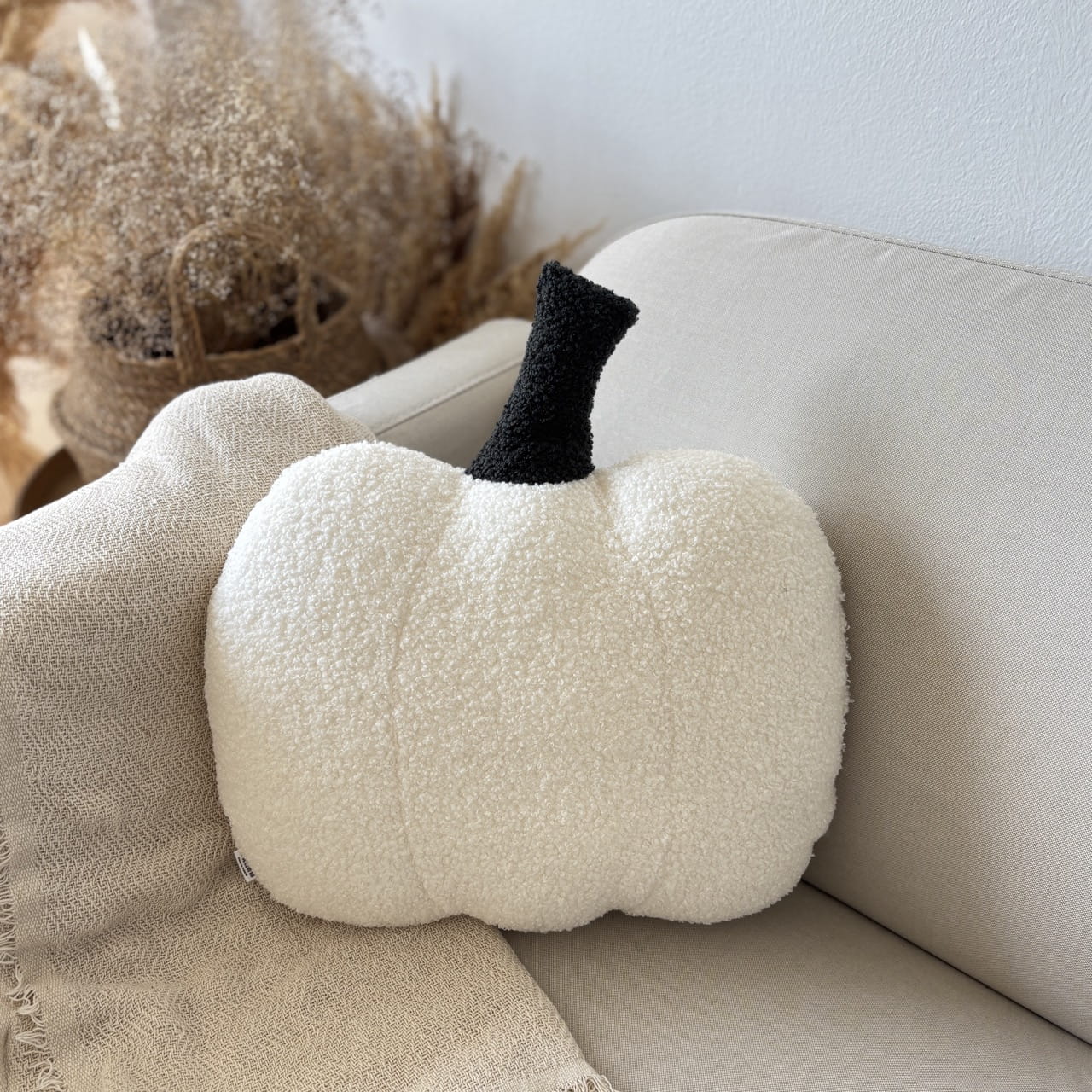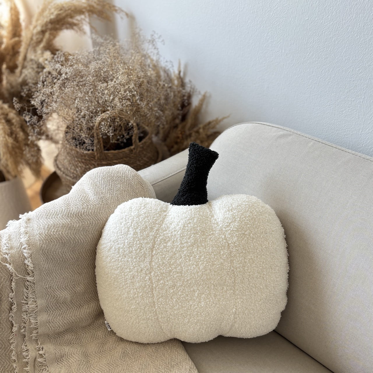 Poduszka jesienna w kształcie Dyni w białym ciepłym kolorze z czarnym "ogonkiem"