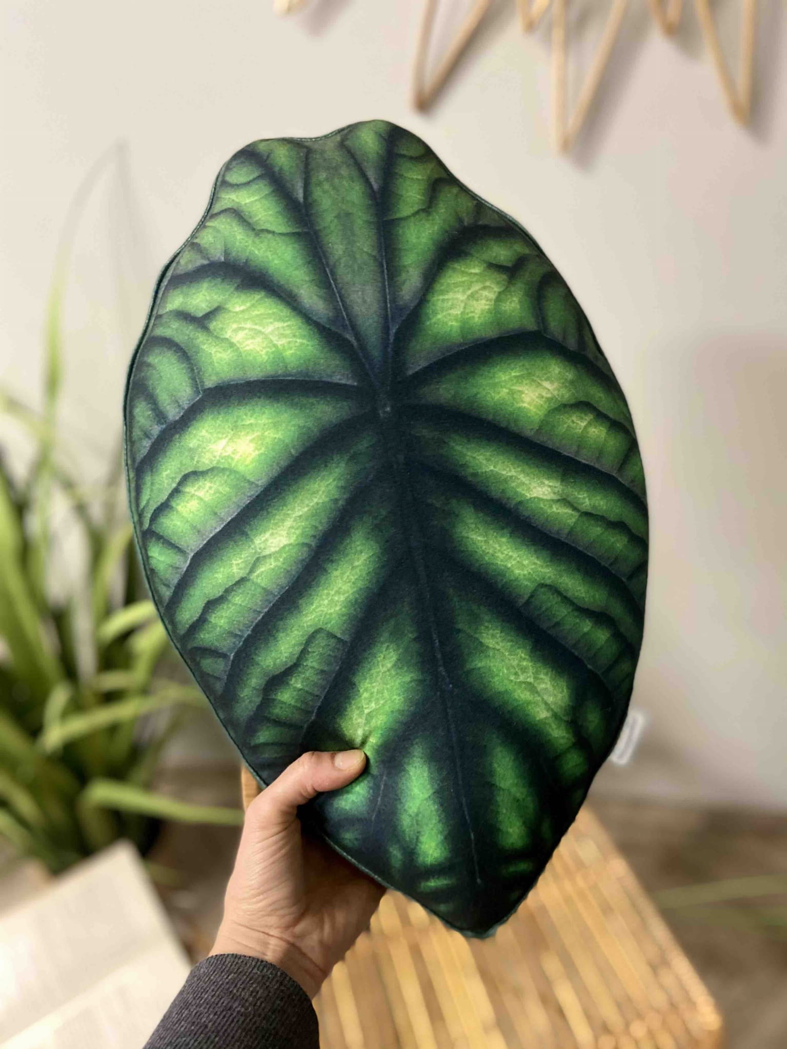 - wymiary : poduszka liść Alokazja Dragon Scale ma wymiary: 43 cm x 27 cm. Doskonale sprawdzi się jako piękna ozdoba w salonie lub urodzinowy prezent dla miłośnika roślin i trendów Urban Jungle. Oryginalny kształt liścia trójwymiarowy- odwzorowany na podstawie prawdziwego liścia rośliny. Widoczne wszystkie detale prawdziwego liścia.