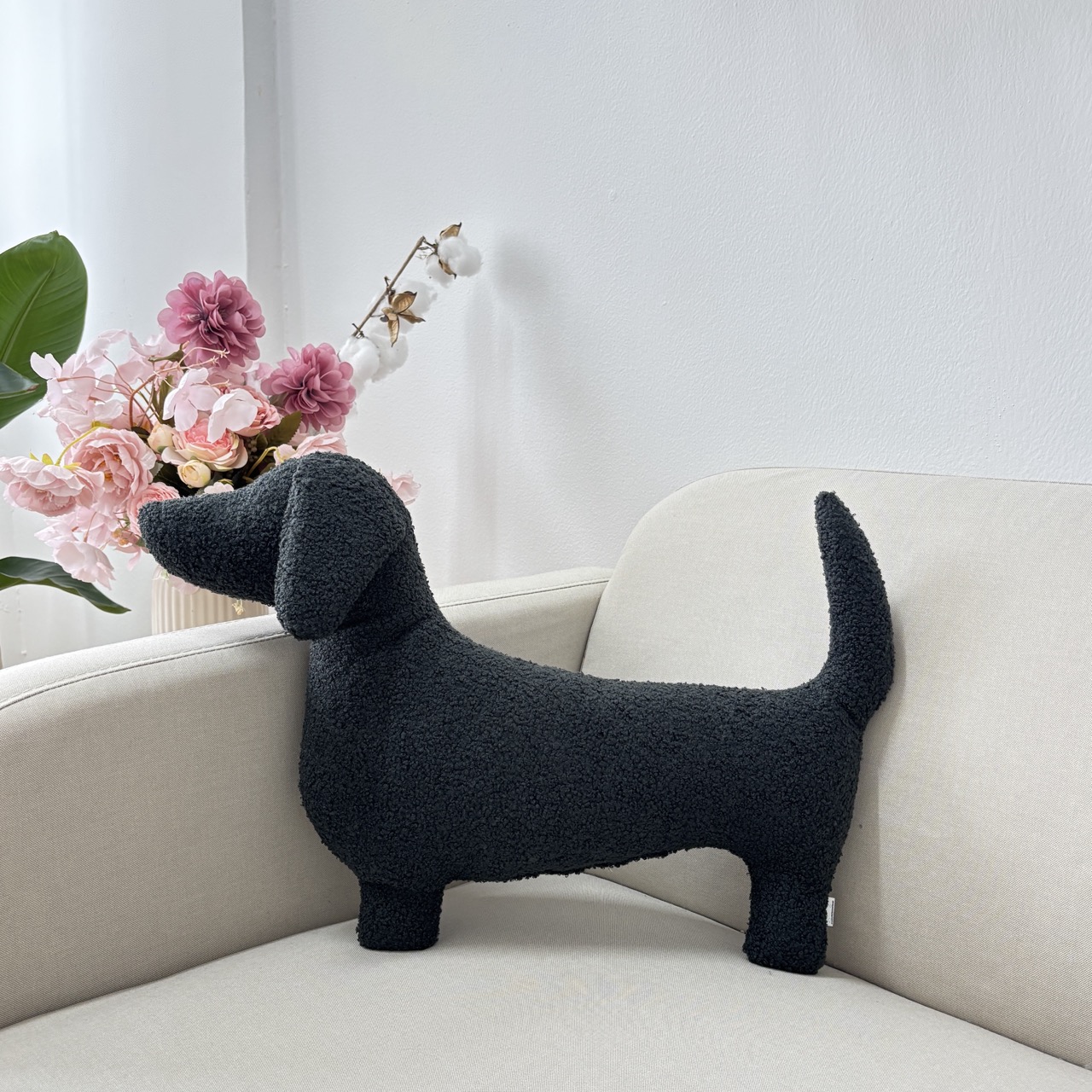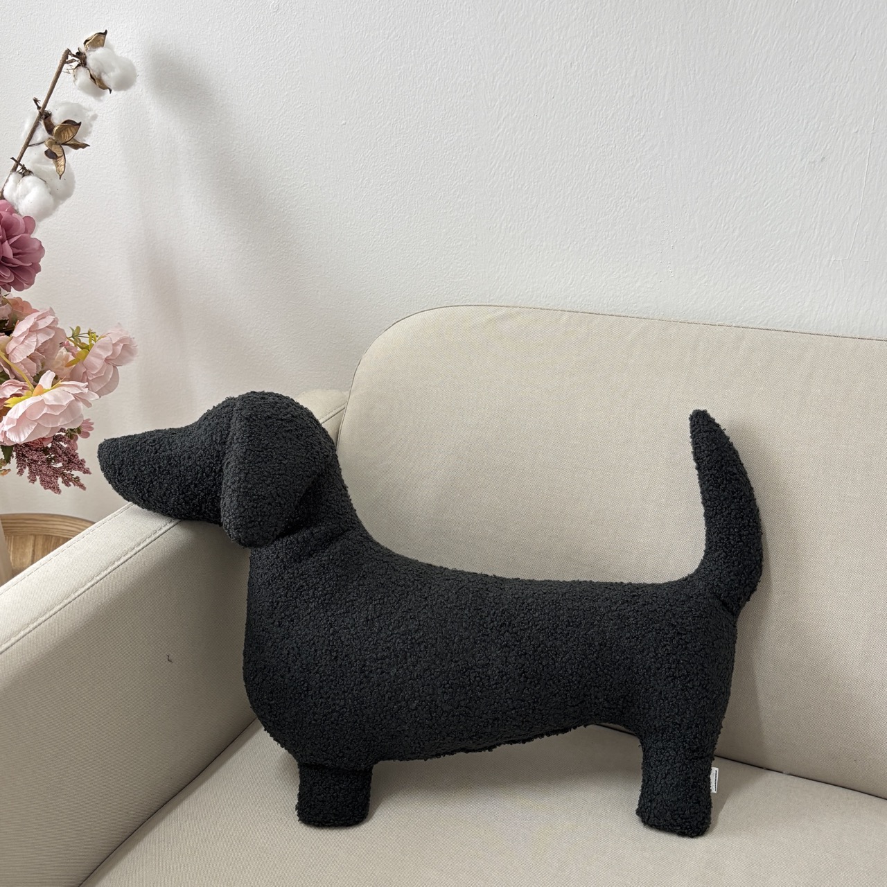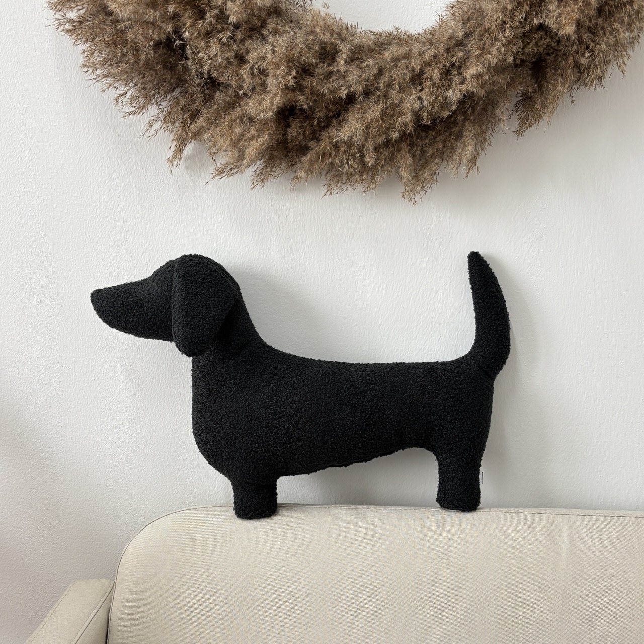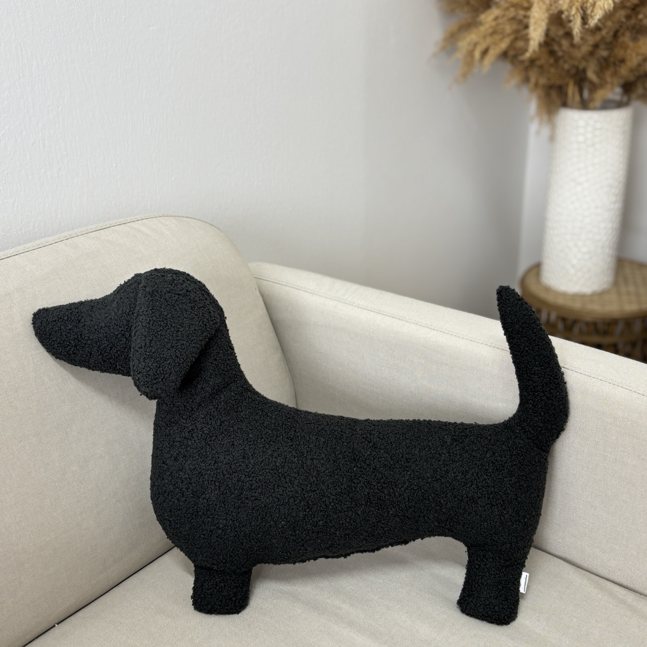Poduszka pies Jamnik boucle czarna