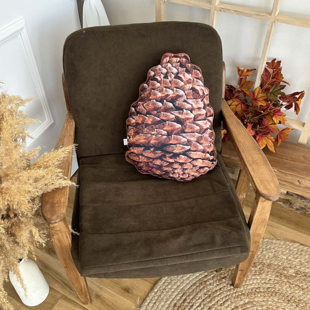 Poduszka w kształcie Szyszki sosnowej, to bardzo kreatywna dekoracja wnętrza, który nada przyjemny akcent we wnętrzu i przywodzi na myśl spokojną atmosferę leśnej scenerii.